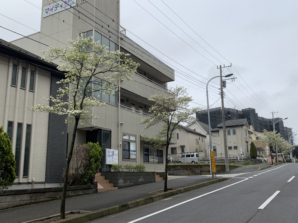 (マイティの前の街路樹の白いハナミズキの花が満開でとてもきれいです。)
